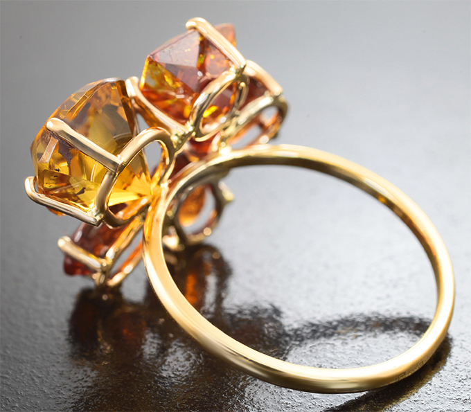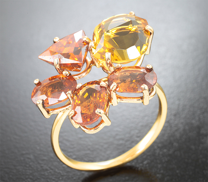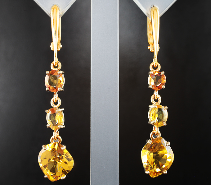 Вашему вниманию предлагается комплект (кольцо + серьги) из желтого золота 585 пробы с сапфирами, гелиодорами, сфалеритом и спессартинами! Вес комплекта 12,29 г.