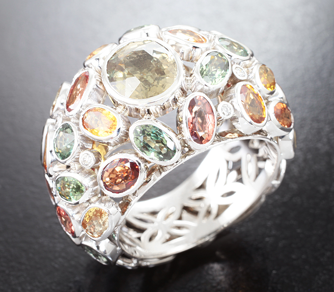 Кольцо с разноцветными сапифирами 13,2 карата и бриллиантами