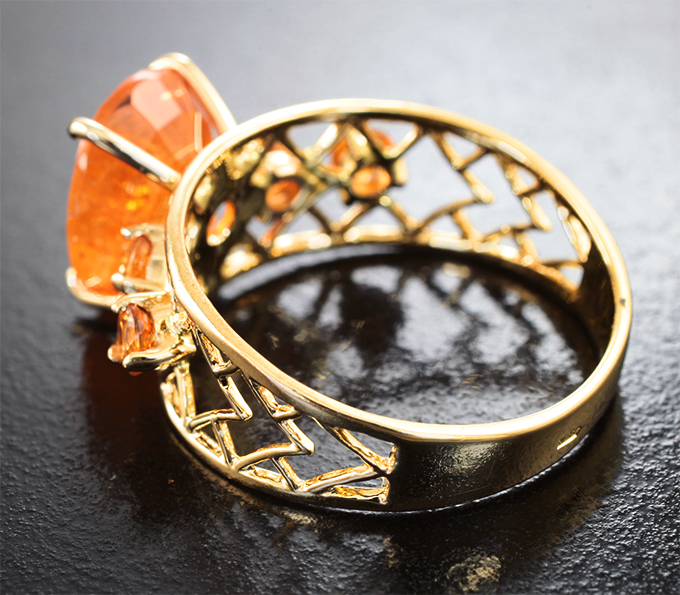 Кольцо с крупным 6,13 карата и малыми спессартинами «фанта»