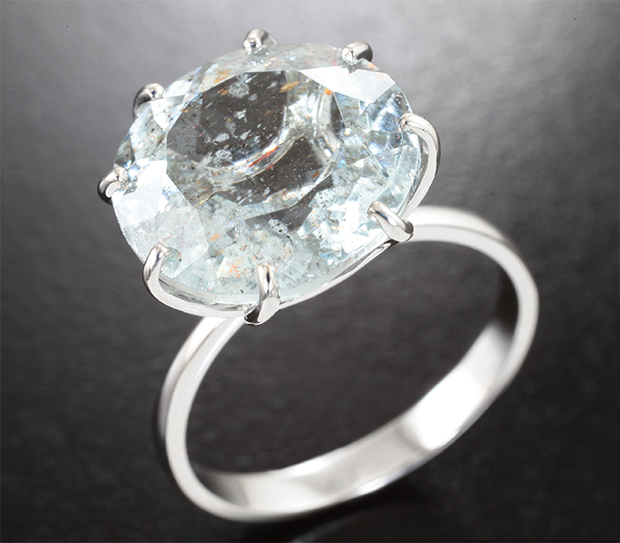 Кольцо с редким аквамарином с включением рутила 8,16 карата