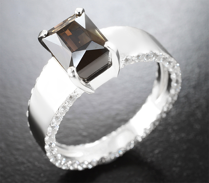 Кольцо с чистейшим полихромным турмалином 2,41 карата и бесцветными сапфирами