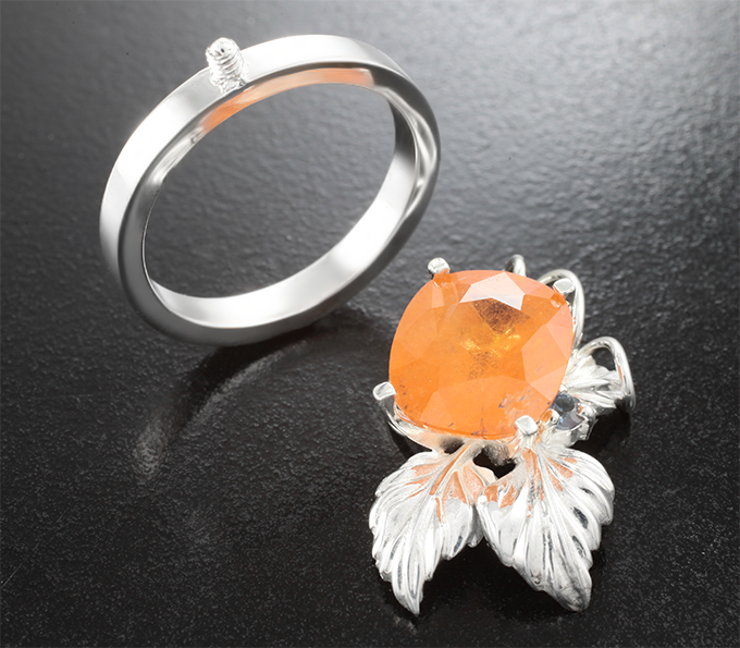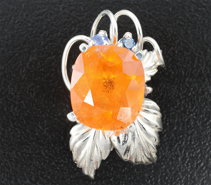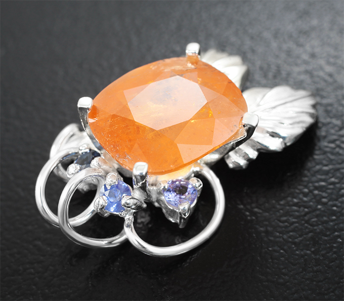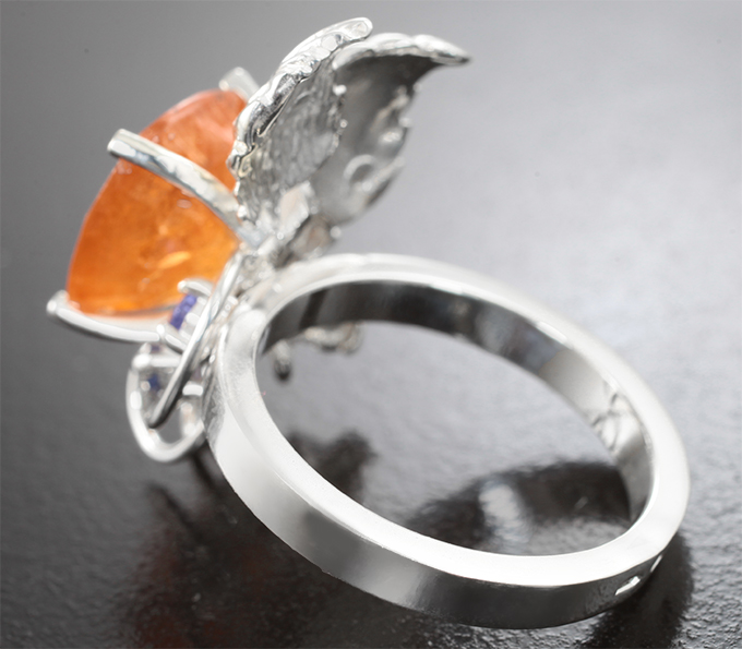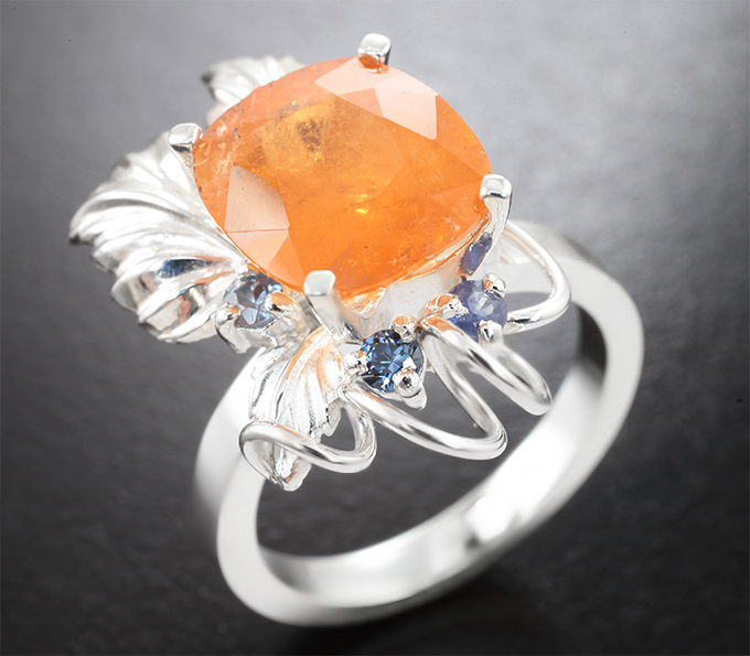 Кольцо-трансформер cо спессартином гранатом 6,09 карата и васильковыми сапфирами