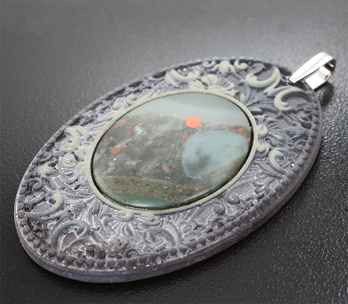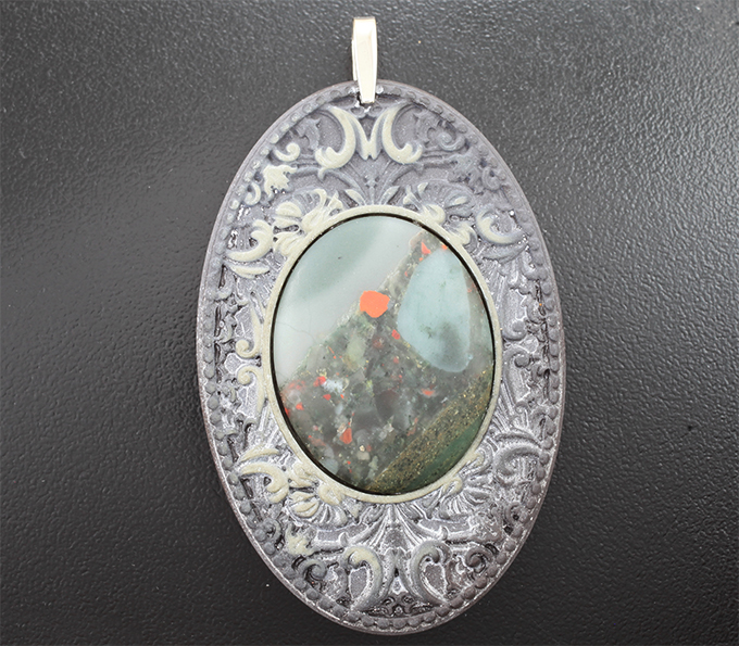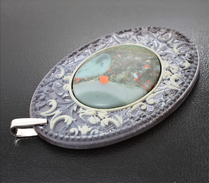 Камея-подвеска «Вишневый сад» с цельным садовым агатом в резной яшме