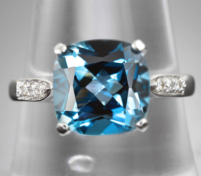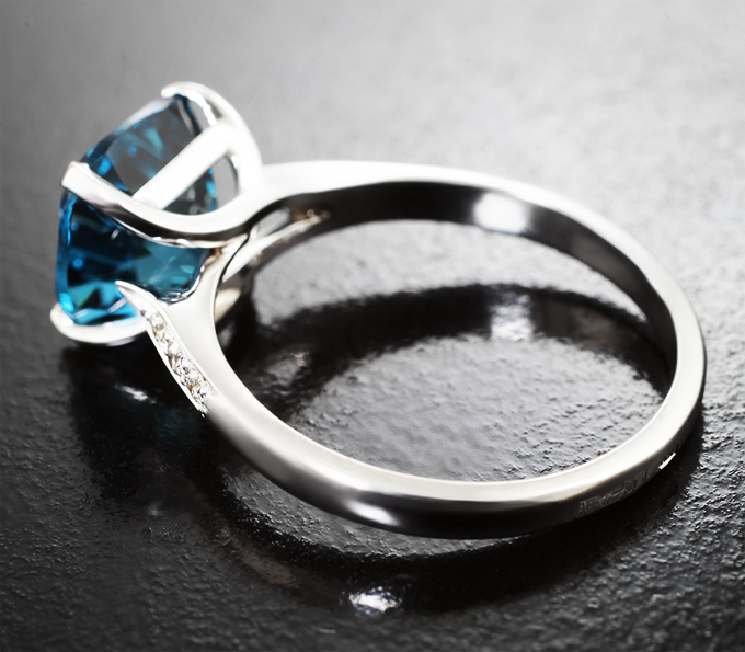 Кольцо с чистейшим синим London топазом 4,1 карата и бриллиантами