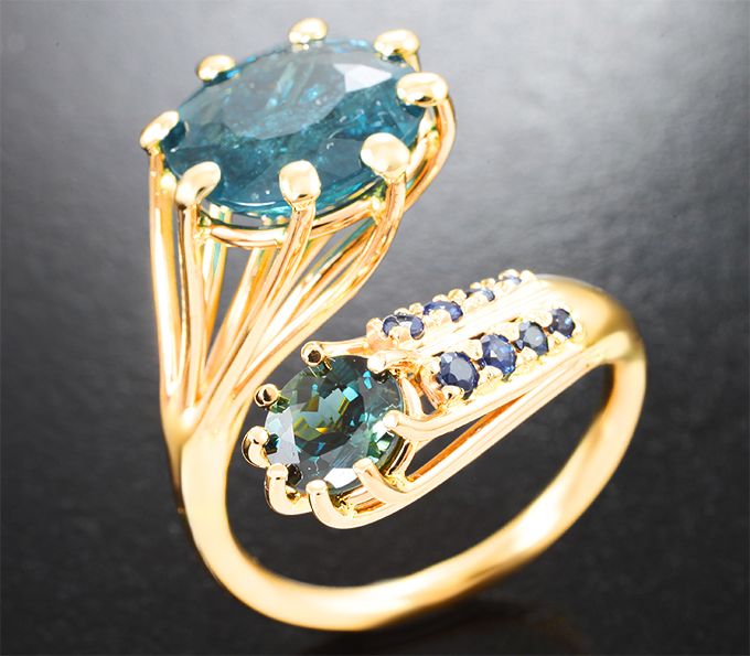Кольцо с индиголитом турмалином 4,55 карата и синими сапфирами
