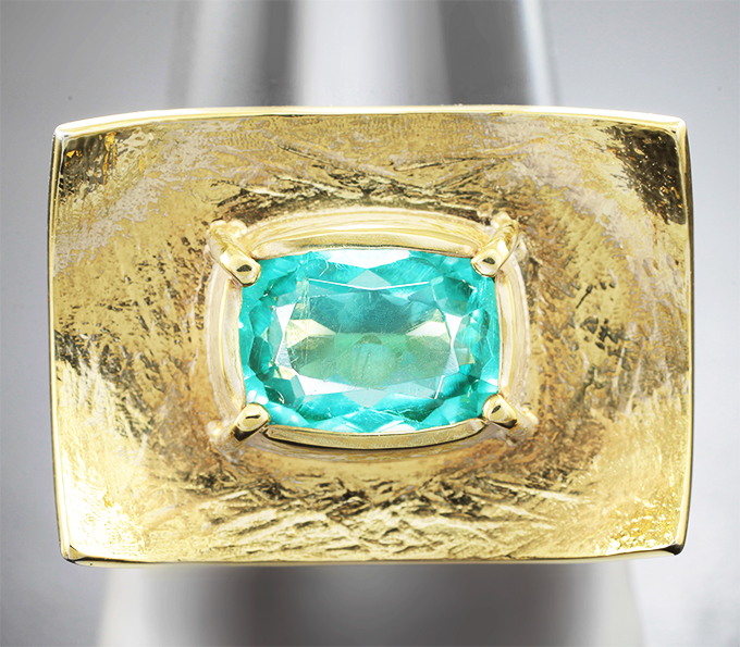 Вашему вниманию предлагается кольцо из стерлингового серебра (925 проба) c «неоновым» апатитом! Изделие позолочено. Площадка 20 х 14 мм, высота 4 мм. Вес изделия 5,82 г. Размер 16,5. Ниже приводятся ювелирные характеристики вставки.