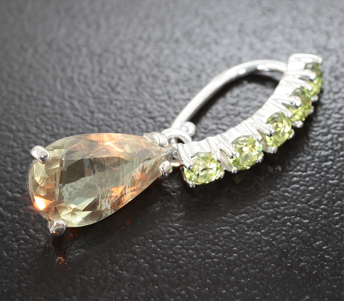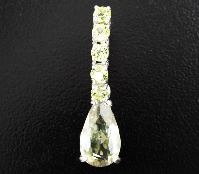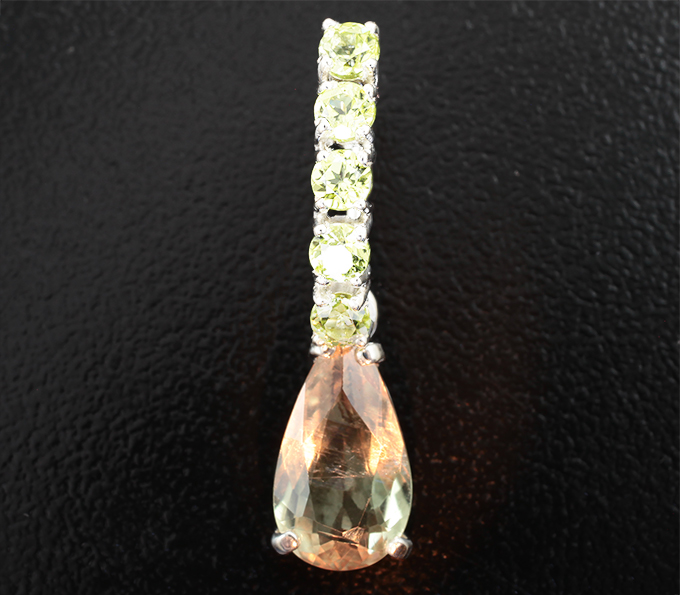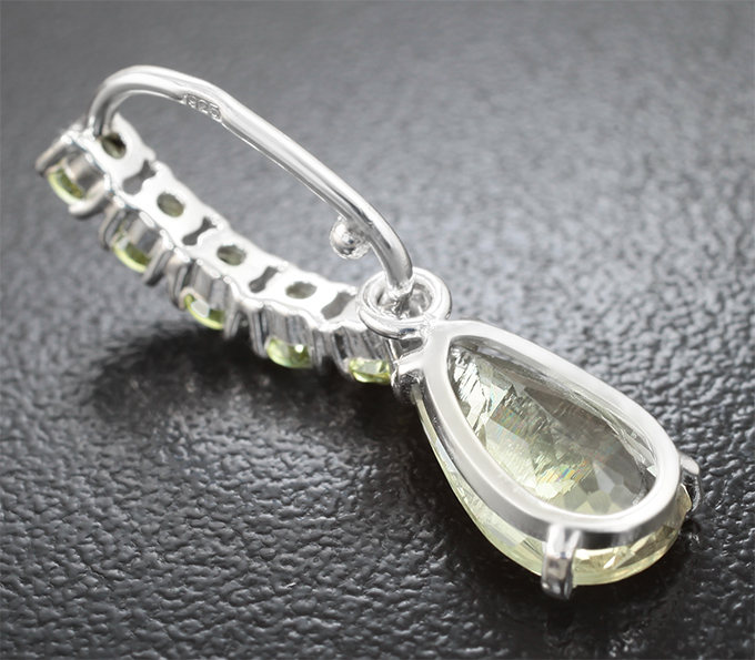 Вашему вниманию предлагается кулон из стерлингового серебра (925 проба) с диаспором и перидотами! Диаметр дополнительной инкрустации 3 мм. Площадка кулона 28 х 7 мм. Вес изделия 1,56 г. Ниже приводятся ювелирные характеристики вставки.