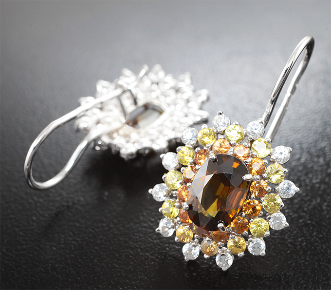 Серьги со сфенами 3,66 карата и разноцветными сапфирами