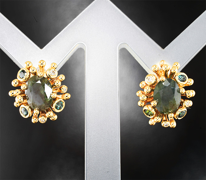 Серьги с уральскими александритами 3,69 карата и бриллиантами