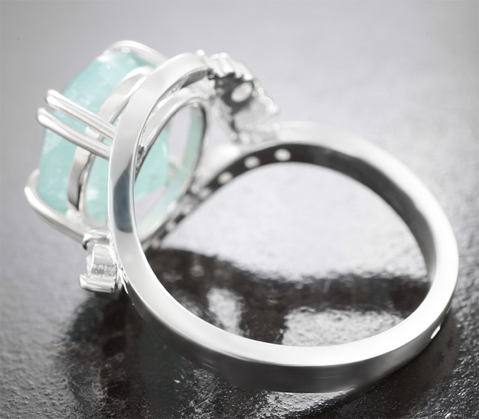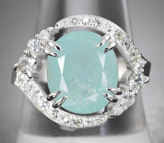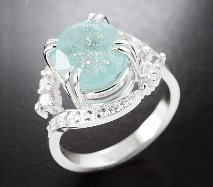 Кольцо с крупным параиба турмалином 5,22 карата и бесцветными цирконами
