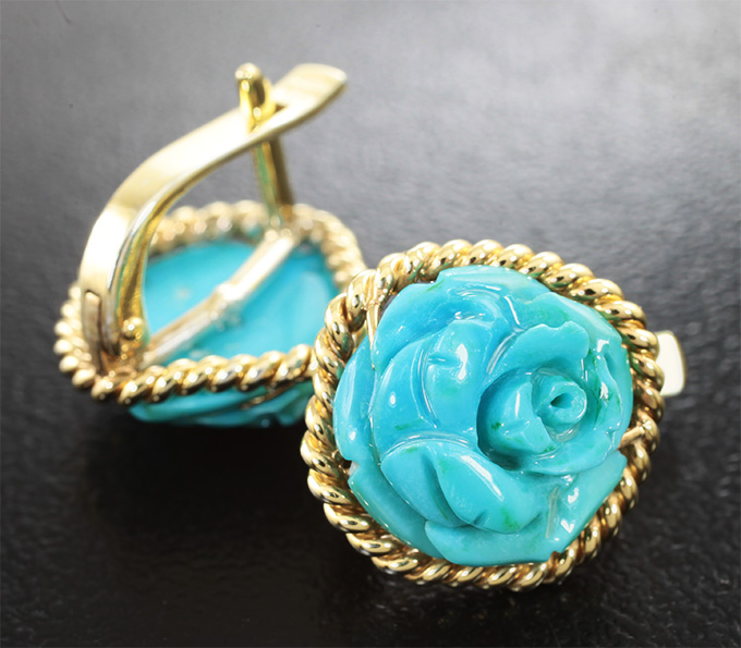 Вашему вниманию предлагаются серьги из стерлингового серебра (925 проба) с резной армянской бирюзой! Изделие позолочено. Площадка серег 13 х 13 мм. Вес пары 3,02 г. Ниже приводятся ювелирные характеристики вставок.