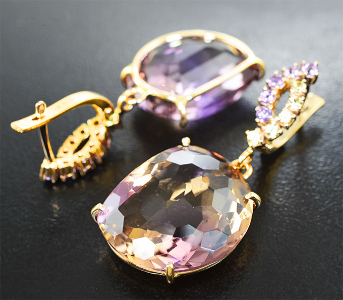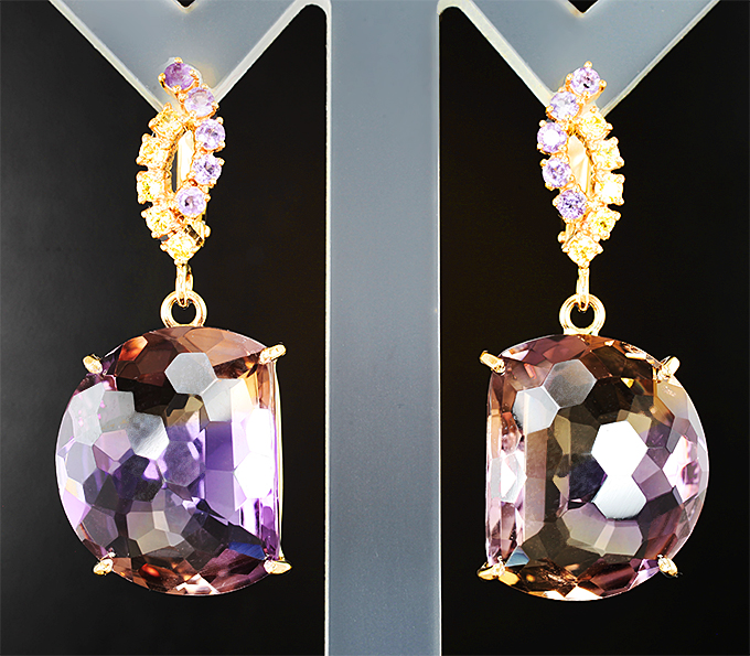 Серьги с аметринами авторской огранки 29,29 карата, цитринами и аметистами