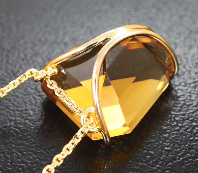 Вашему вниманию предлагается колье из желтого золота 585 пробы с цитрином авторской огранки! Размеры подвески 16 х 13 мм. Длина по цепочке регулируемая: от 455 мм до 485 мм. Вес изделия 4,24 г. Ниже приводятся ювелирные характеристики вставки.