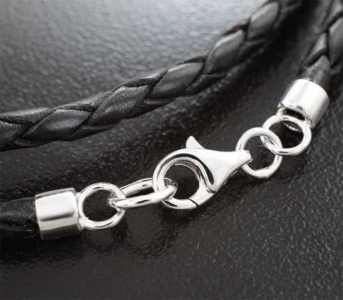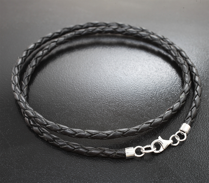 Плетеный шнур из телячьей кожи с застежкой из белого золота 585 пробы! Диаметр 3,5 мм. Длина 450 мм. Вес 4,13 г.