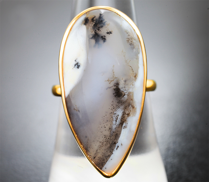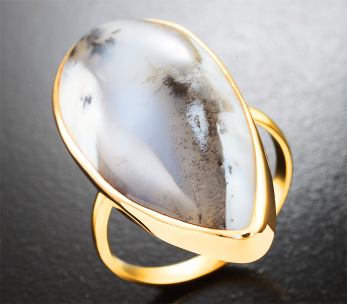 Вашему вниманию предлагается кольцо из желтого золота 585 пробы с дендритическимм агатом! Площадка 30 х 15 мм, высота 6 мм. Вес изделия 6,53 г. Размер 18. Ниже приводятся ювелирные характеристики вставки.