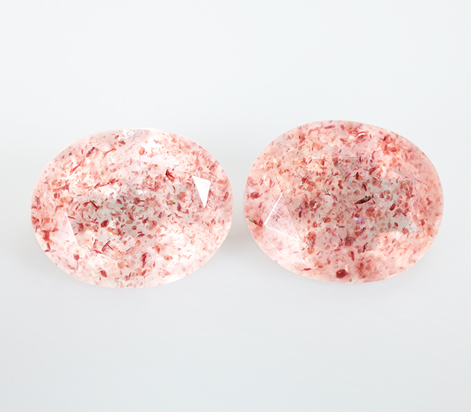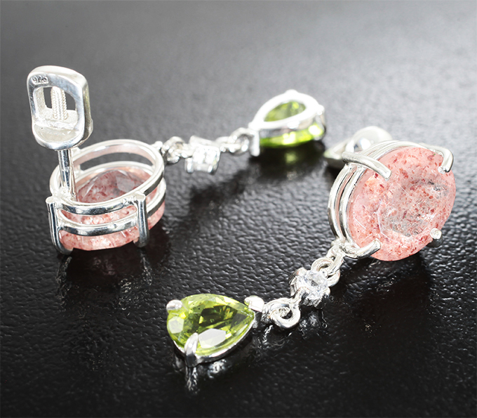 Серьги с земляничным кварцем 5,34 карата, перидотами и лейкосапфирами