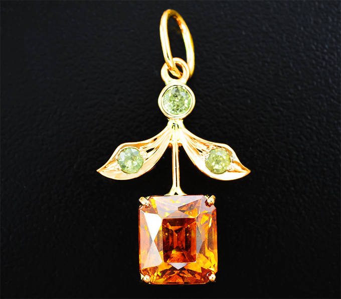 Кулон со сфалеритом 7,66 карата и уральскими демантоидами гранатами