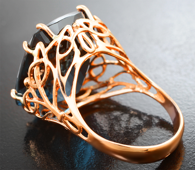 Вашему вниманию предлагается кольцо из розового золота 585 пробы чистейшим синим London топазом! Площадка 21 х 21 мм, высота 11 мм. Вес изделия 12,41 г. Размер 20. Ниже приводятся ювелирные характеристики вставки.