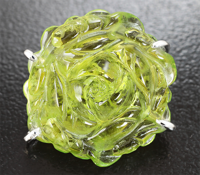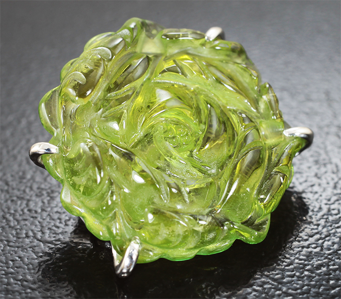 Брошь с резным зеленым турмалином 11,67 карата