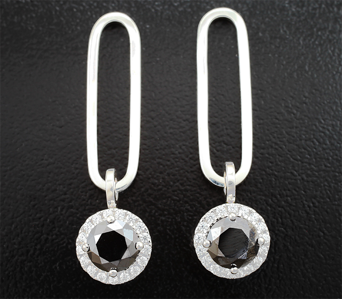 Вашему вниманию предлагаются подвесы для серег из стерлингового серебра (925 проба) с черными муассанитами и кубиком циркония! Размеры вставок 1 мм и 6 мм. Размеры серег с петлей 34 х 9 мм. Вес пары 2,84 г. Ниже приводятся ювелирные характеристики вставок вставок.