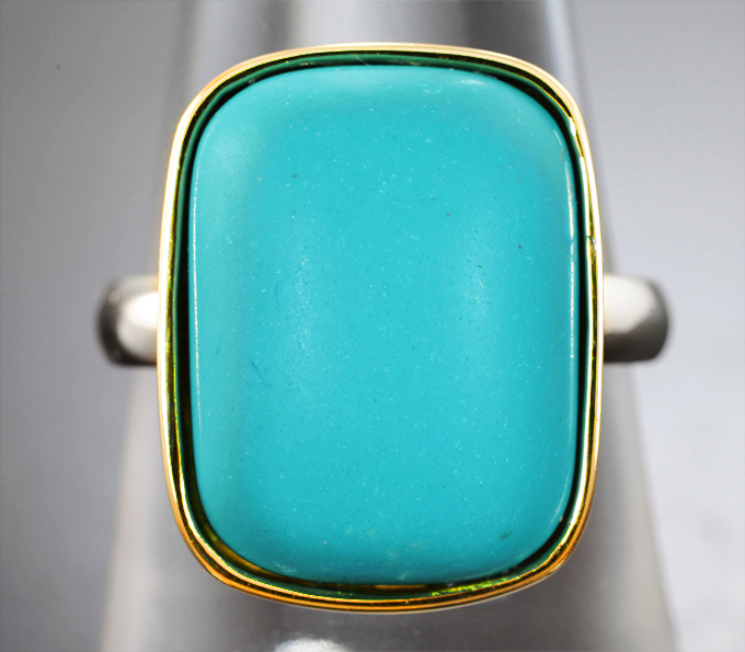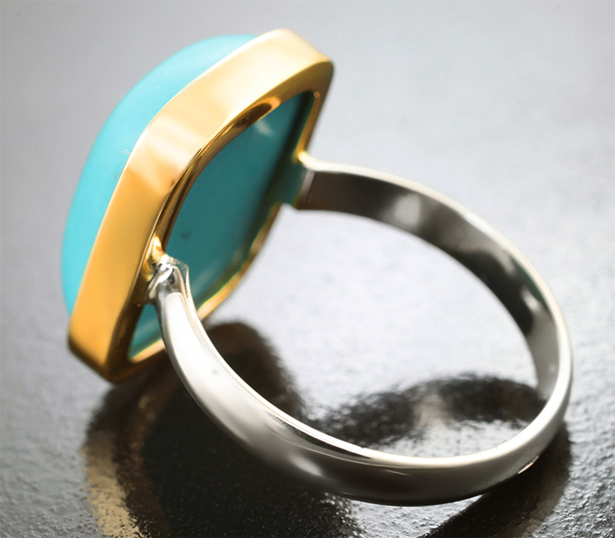 Вашему вниманию предлагается кольцо из белого и желтого золота 585 пробы c бирюзой 9,51 карата! Размеры вставки 16 х 12 мм. Площадка 18 х 14 мм, высота 7 мм. Вес изделия 5,29 г. Размер 17,5.