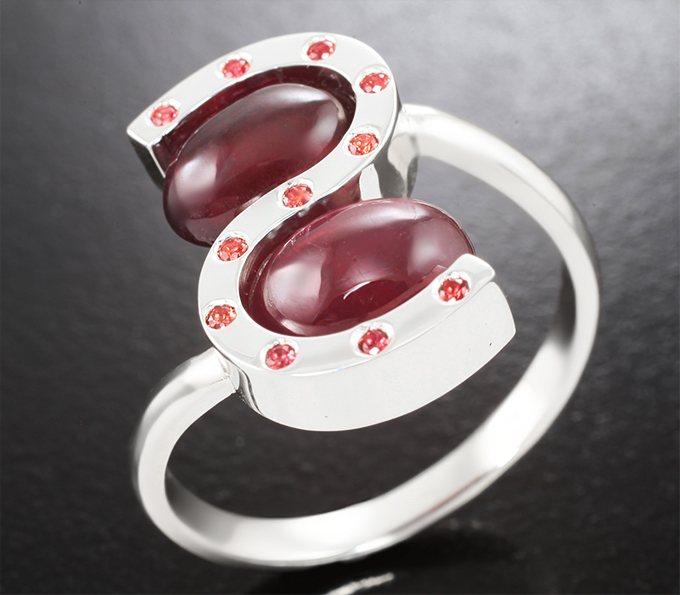 Вашему вниманию предлагается кольцо из стерлингового серебра (925 проба) c рубином и оранжевыми сапфирами! Диаметр дополнительной инкрустации 1,2 мм. Площадка 19 х 11 мм, высота 5 мм. Вес изделия 5,6 г. Размер 18,25. Ниже приводятся ювелирные характеристики центральных вставок.