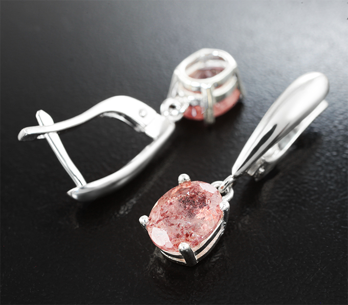 Серьги с земляничным кварцем 3,65 карата