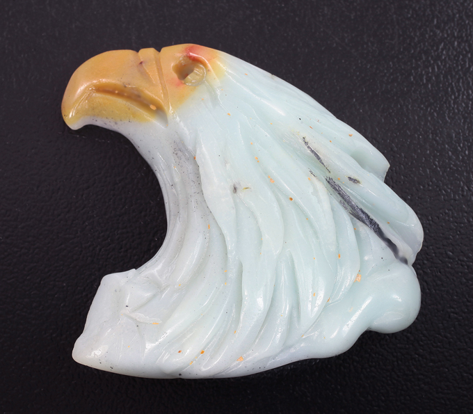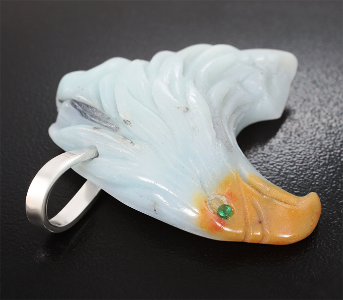 Кулон с камеей-подвеской «Орел» из цельного амазонита, инкрустированной изумрудом