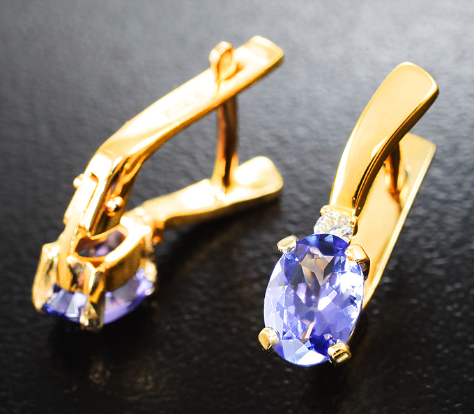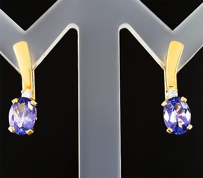 Серьги с танзанитами 1,48 карата и бриллиантами