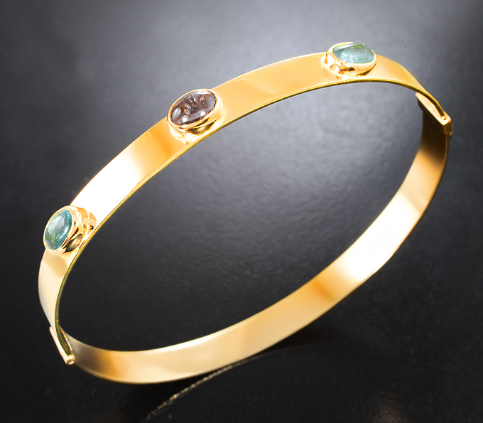 Вашему вниманию предлагается браслет из желтого золота 585 пробы с турмалинами! Длина браслета по окружности 180 мм, ширина 6 мм. Вес изделия 13,13 г. Ниже приводятся ювелирные характеристики вставок.