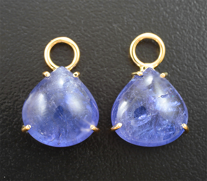 Вашему вниманию предлагаются подвесы для серег из желтого золота 585 пробы с танзанитами! Размеры изделия 18 х 12,5 мм. Вес пары 4,02 г. Ниже приводятся ювелирные характеристики вставок.
