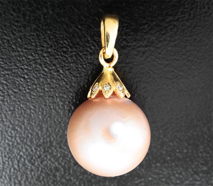 Кулон с розовой жемчужиной 12,35 карата и бриллиантами