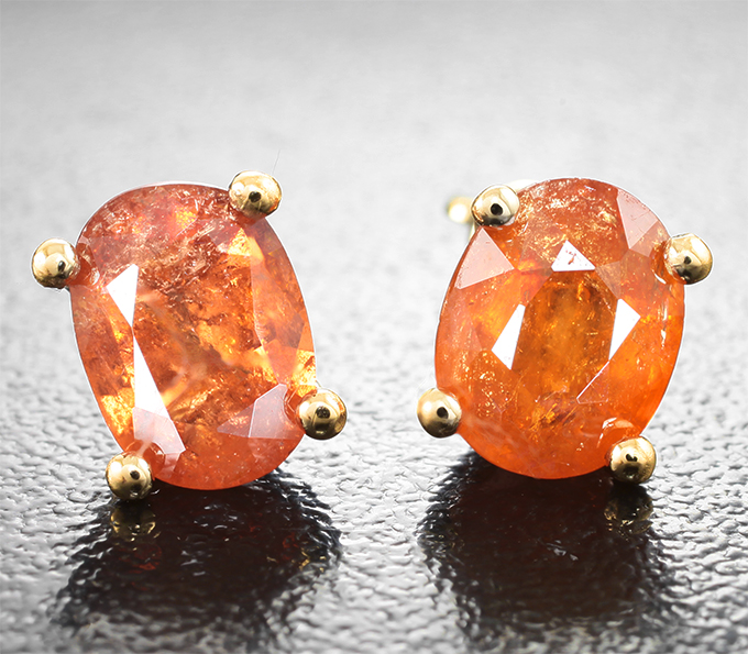 Вашему вниманию предлагаются пусеты из желтого золота 585 пробы со спессартинами! Площадка пусет 9 х 7 мм. Вес пары 2,43 г. Ниже приводятся ювелирные характеристики вставок.