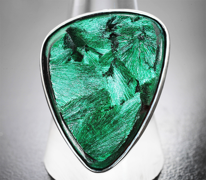 Кольцо с плисовым уральским малахитом на долерите 41,67 карата