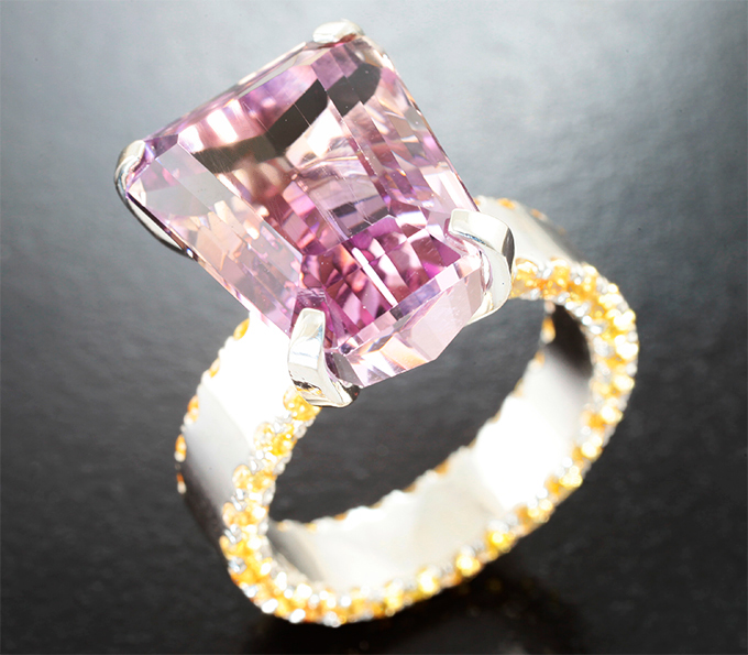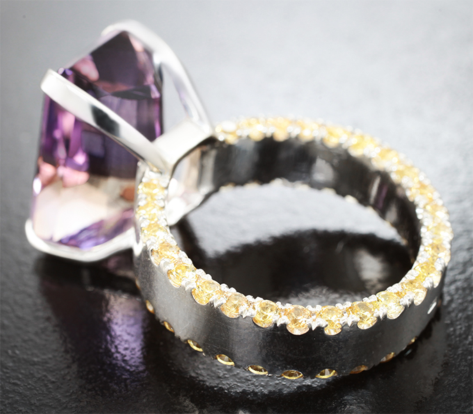 Кольцо с аметрином авторской огранки 10,65 карата и сапфирами