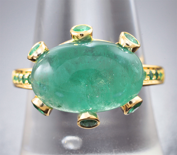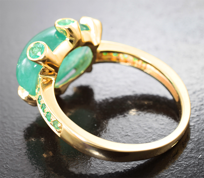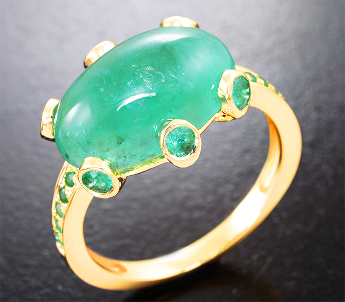 Кольцо с уральским изумрудом 6,16 карата и малыми изумрудами