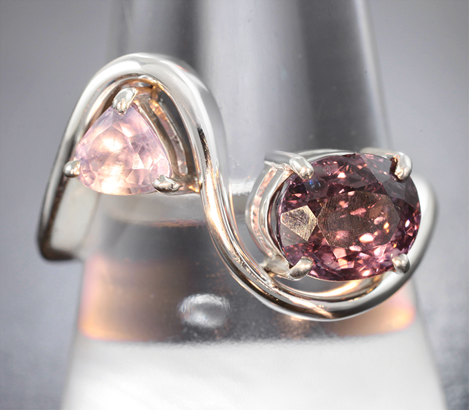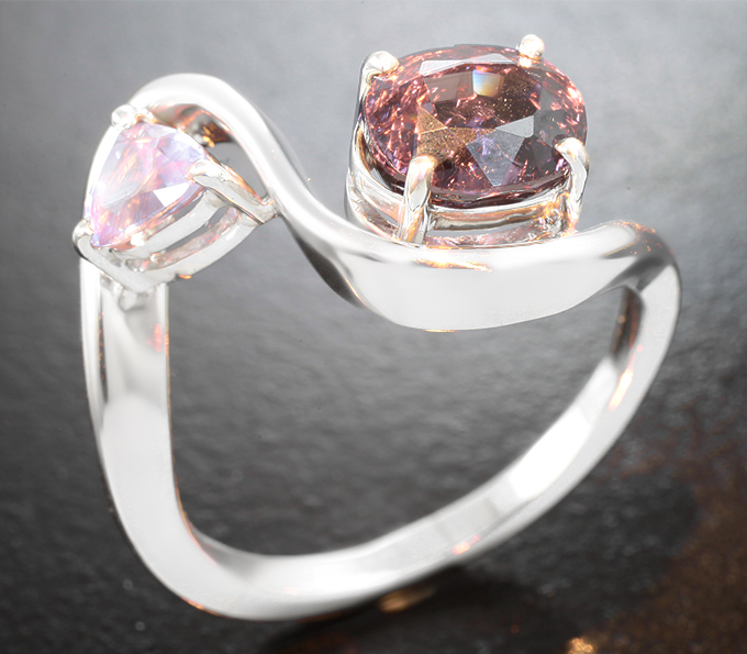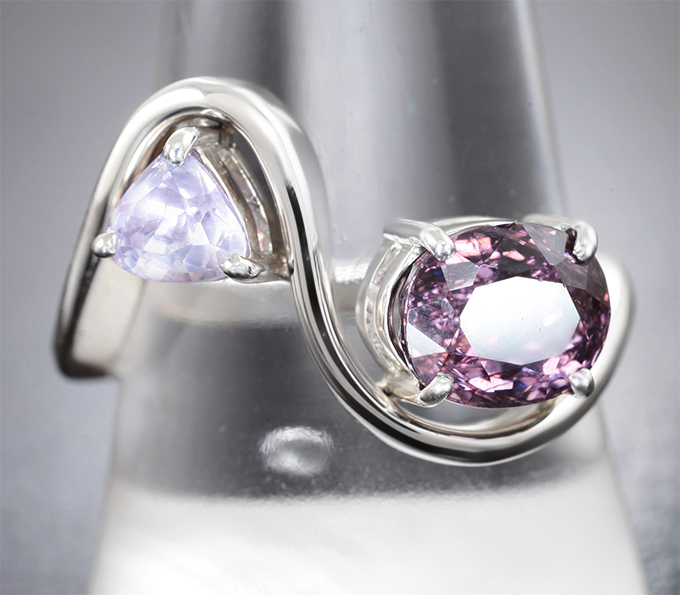 Кольцо cо шпинелью 2,65 карата и лавандовым сапфиром 0,65 карата со сменой цвета