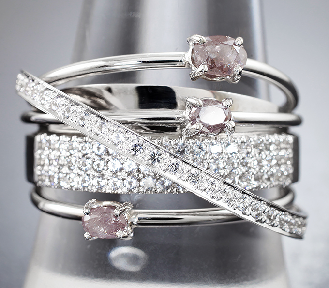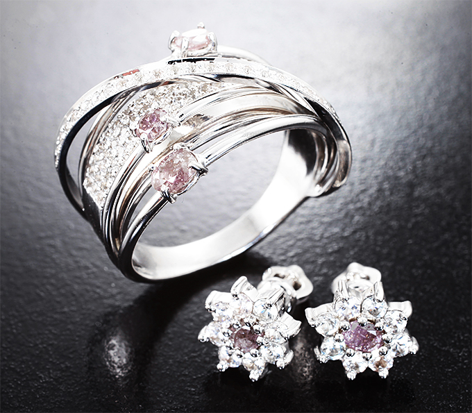 Комплект с розовыми бриллиантами 0,7 карата и лейкосапфирами