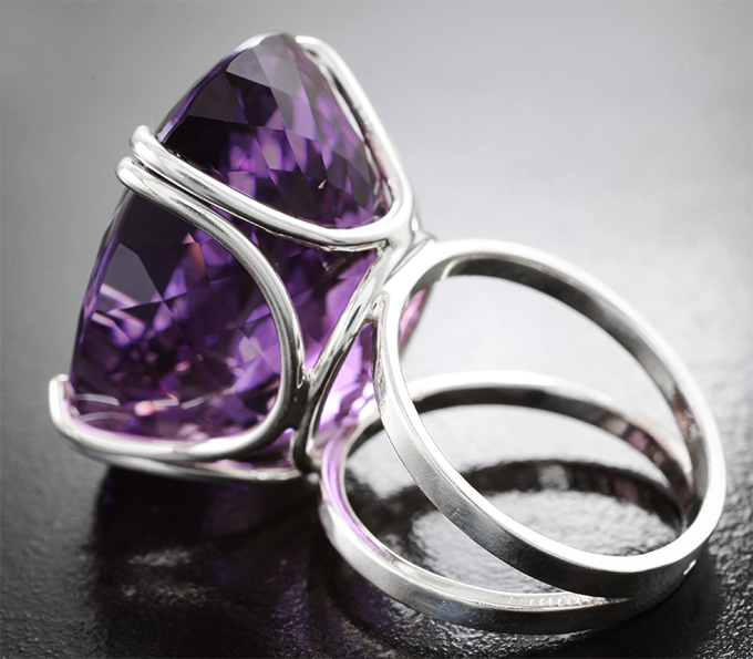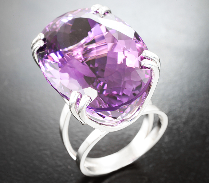 Кольцо с крупным чистейшим аметистом 43,56 карата