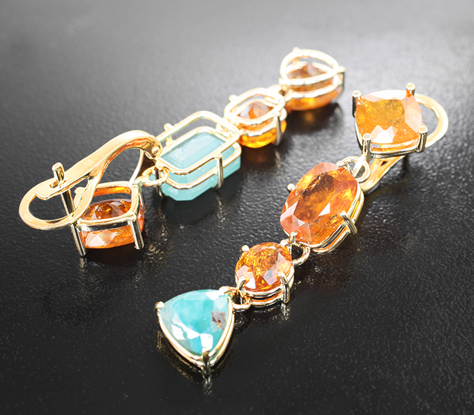 Золотые серьги со смитсонитами 9,91 карата и клиногумитами 14,11 карата