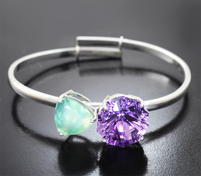 Браслет с аметистом 21,78 карата и пренитом авторской огранки 8,93 карата