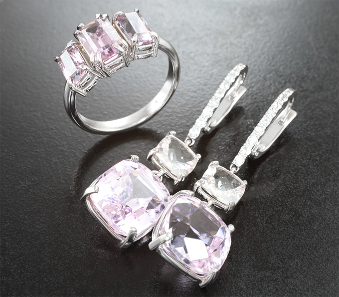 Комплект с кунцитами 18,44 карата, диаспорами и морганитами