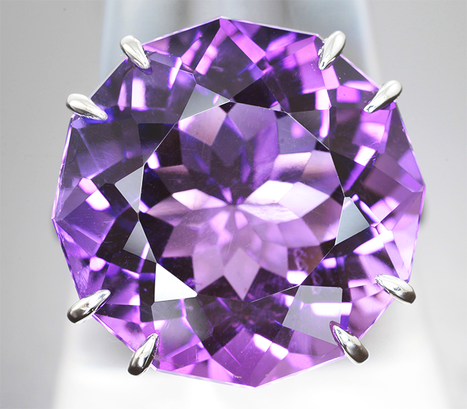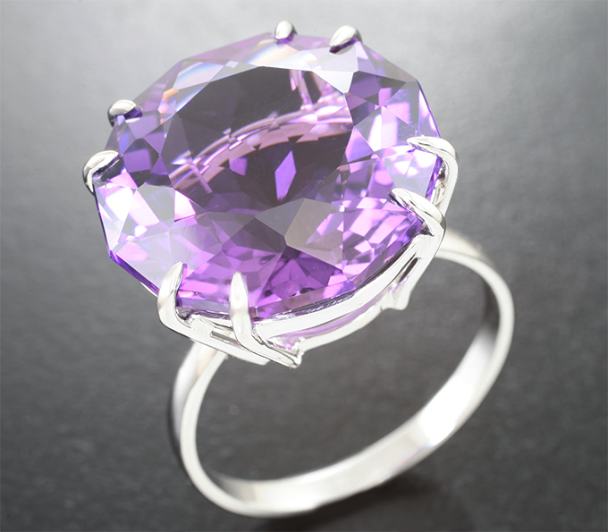Вашему вниманию предлагается кольцо из белого золота 585 пробы c аметистом авторской огранки! Площадка 18 х 18 мм, высота 12 мм. Вес изделия 6,6 г. Размер 19. Ниже приводятся ювелирные характеристики вставки.