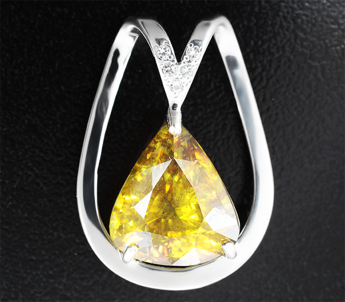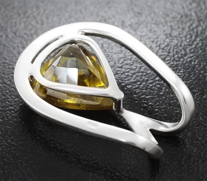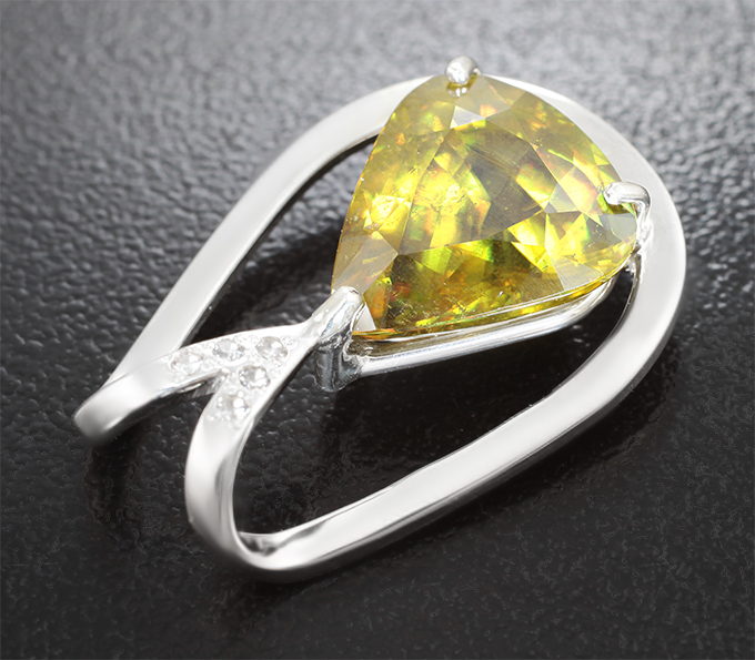 Кулон с крупным желто-зеленым сфеном 7,69 карата и бесцветными цирконами