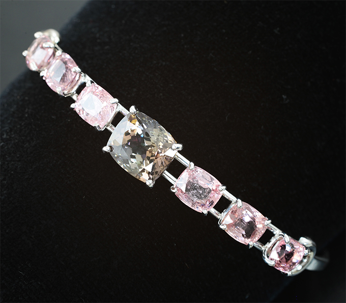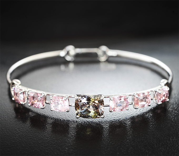 Браслет с цоизитом высокой чистоты 3,83 карата и «неоновыми» шпинелями 6,47 карата