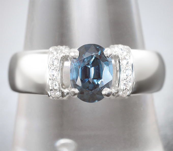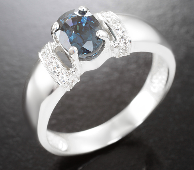 Кольцо с синей шпинелью 1,25 карата и лейкосапфирами