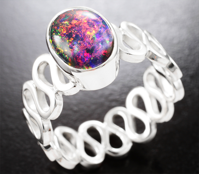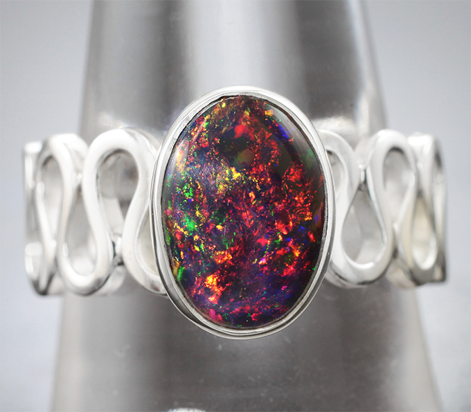 Кольцо с кристаллическим черным опалом 1,34 карата