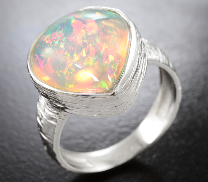 Кольцо с кристаллическим эфиопским опалом 5,2 карата