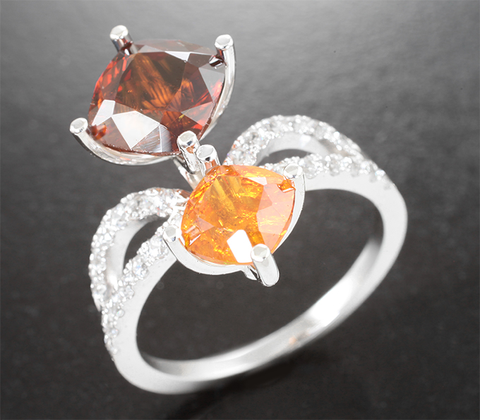 Кольцо с редким бастнезитом 4,19 карата, клиногумитом 1,46 карата и лейкосапфирами