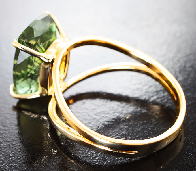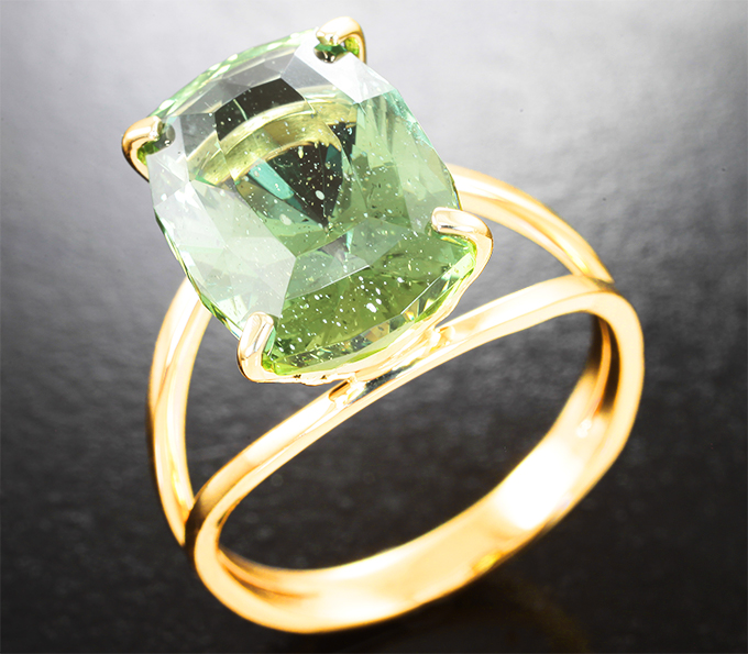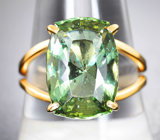 Кольцо с крупным полихромным апатитом авторской огранки 9,24 карата